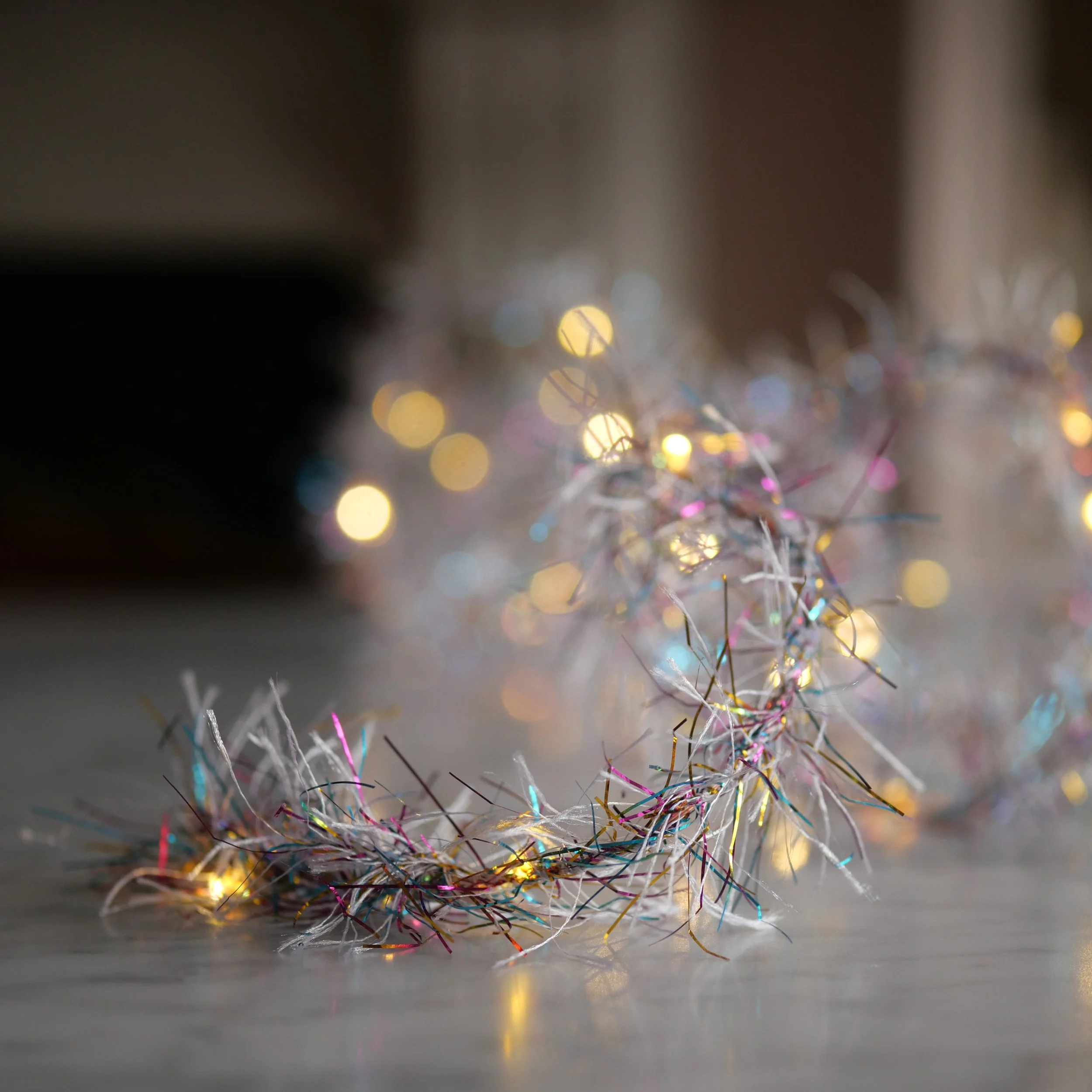 Nothing says Christmas more than tinsel! We have elevated the classic tinsel by hand-spinning it with warm white LEDs to create a magic glow! Give as a gift, drape on your Christmas tree, or decorate your home. Choose from 4 beautiful colour ways, available in 3 lengths with both battery power for easy placement or USB for longer illumination. Co-ordinate with others lights in our Tinsel Christmas Lights Collection.